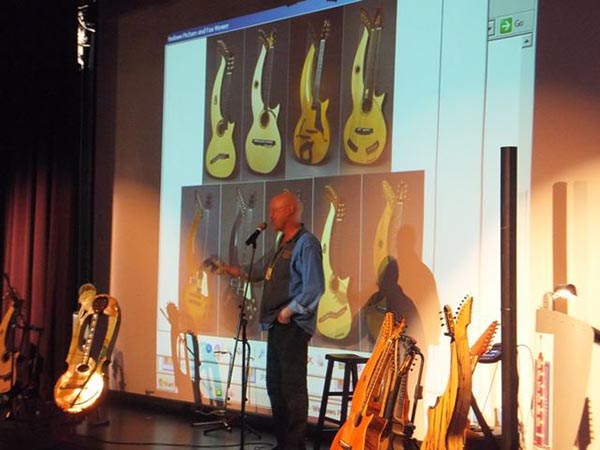 Presenting my harp guitars in the Luthier's Corner at the Harp Guitar Gathering