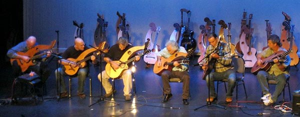 The past hosts of the Harp Guitar Gatherings, starting "The Water is Wide"