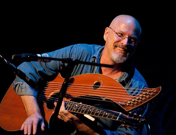 With my 13-string acoustic harp guitar