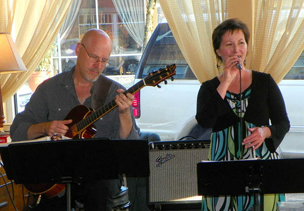 Accompanying Nancy Conescu on 17-string jazz harp guitar