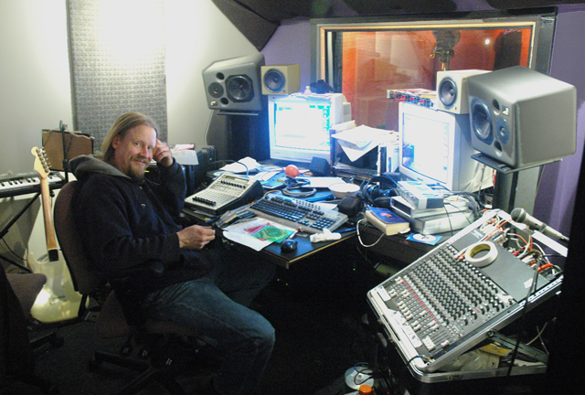 Jeff KnudsonI felt technically competent enough to record the tracks for the album, but I knew I was no mixing or mastering engineer, so I called on Jeff Knudson for those duties. Jeff mixed the project in Performer, using plugins on a UAD-1 PCI card. He mastered with Bias Peak with the same card and plugins, and burned master discs with Roxio Jam. Jeff's recording studio is Primordial Soup Recording. I can't say enough about his professionalism, attention to detail, and talent as an engineer, and he's a fine guitarist as well. Catch him sometime playing with Lisa Mann, whose CDs he also engineered and played on. |